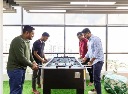 We offer several benefits, including two weekly holidays, fully subsidized lunch and snack facilities, and a yearly salary review. Employees also receive two festival bonuses and opportunities for professional development. Our work environment is creative and collaborative, with team hangouts and participation in sports events like table tennis, foosball, and other indoor games. After completing one year, employees are eligible for health insurance and a long service benefit.