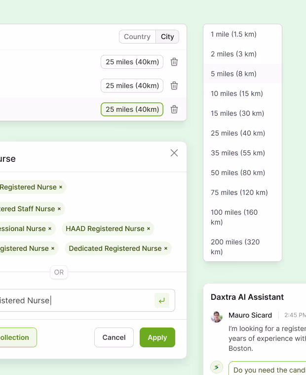 - Integrated NLP and AI for precise candidate search, parsing, and matching.