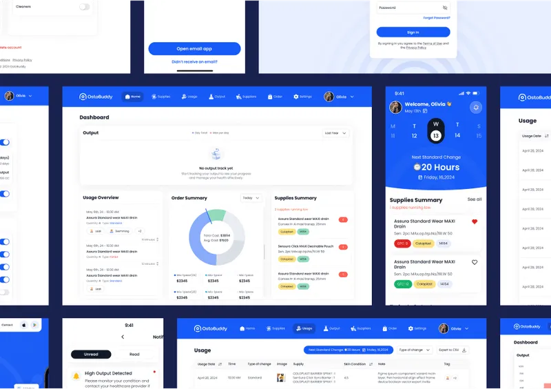 We crafted an intuitive visual design for the app, incorporating detailed user flows to enhance usability. The design focuses on clarity and ease of use, ensuring a seamless experience for ostomy patients.
