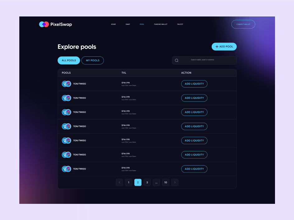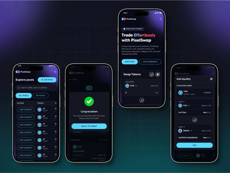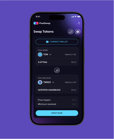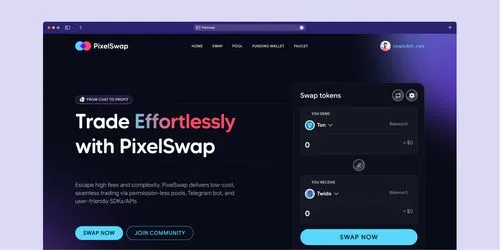 PixelSwap is a cutting-edge decentralized exchange (DEX) built on the TON blockchain, enabling users to swap cryptocurrencies directly from their wallets without a central intermediary.