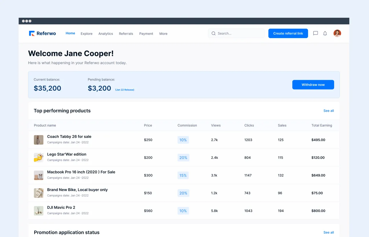 Referwo simplifies management for influencers. It offers multi-account management, post-scheduling, automation, and link performance and earnings statistics. And for personalization we incorporated various editing tools.